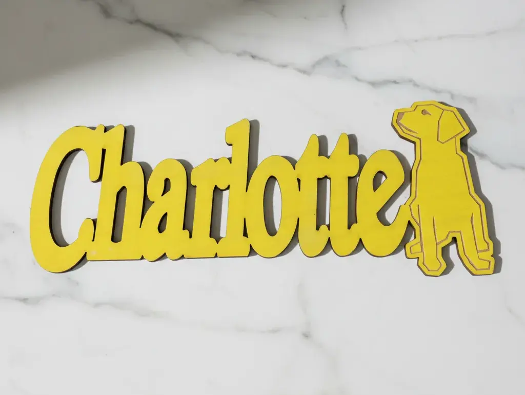 PRÉNOM DE PORTE DÉCOUPE/GRAVURE LASER CHIEN EN CONTRE PLAQUE 3 MM D'ÉPAISSEUR PERSONNALISABLE