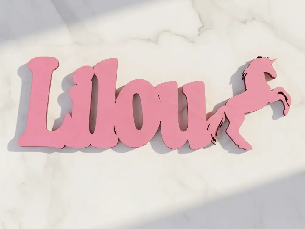 PRÉNOM DE PORTE DÉCOUPE LASER CHEVAL EN CONTRE PLAQUE 3 MM D'ÉPAISSEUR PERSONNALISABLE