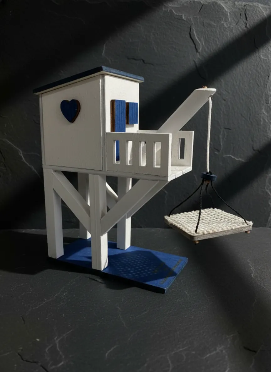 Magnifique cabane à carrelet en bois de peuplier de 3 mm, fabriquée en Charente-Maritime. Chaque pièce est assemblée et peinte à la main avec un filet en coton authentique.